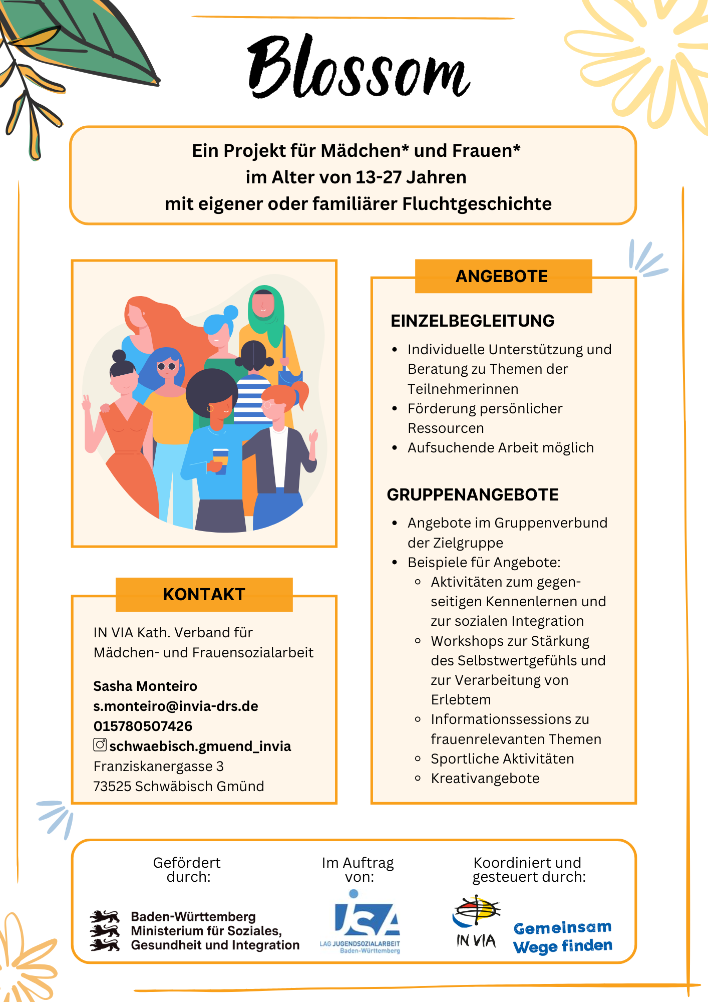Blossom wurde im Ostalbkreis am Standort Schwäbisch Gmünd ins Leben gerufen und ist Teil eines Projektverbundes von insgesamt acht Projekten im Raum Baden-Württemberg, welcher von IN VIA Stuttgart als Regiestelle koordiniert und gesteuert wird. Gefördert werden die Projekte über den Masterplan Jugend des Landes Baden-Württemberg. Weitere Informationen zu Blossom.